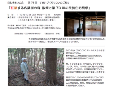 山を下り、山主さんの山から出した材料で建てたご自宅を見学させていただきました。4年前に改装した部分と築70年の経年変化の具合、杉 松 桧 ケヤキ ホウの木 ヒバと使い勝手と表情の違いを説明しましてお開きとなりました。ご自宅の見学は大きい家ではありますが家の雰囲気を感じていただくには総勢40名は多すぎました。