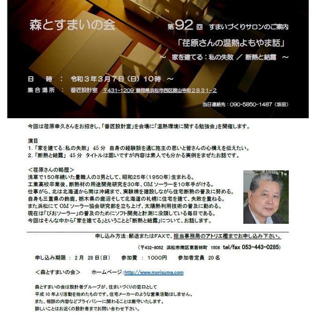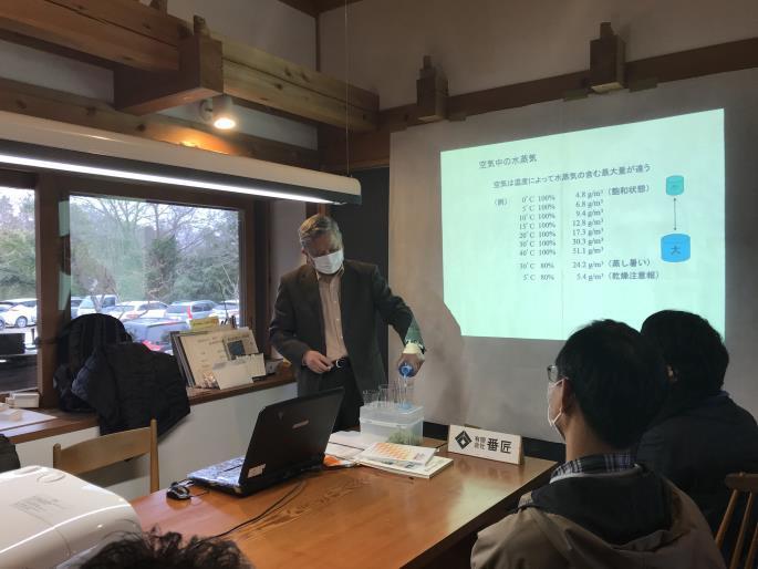 今回はEOMの荏原さんをお招きして、「温熱よもやま話」と題したミニ講演会を開催しました。荏原さんは、ちゃきちゃきの江戸っ子。下町の畳屋さんがご実家だそうですが、社会人になってからは旭化成で長く断熱材の開発や製造に関わってきたとのこと。会社では、どういう巡り合わせか、スタイロ畳にも関わることになり、後に畳屋の親父さんから、こりゃ軽くて助かるよと褒められたとか…。こうした、小噺が散りばめられたミニ勉強会は、あっという間に幕を閉じてしまいました。